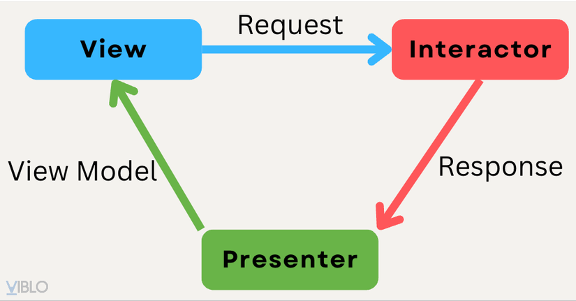 Ở đây mình tạm thời chỉ cho mọi người tập trung 3 thành phần chính cấu tạo nên VIP: View, Interactor và Presenter. Mình sẽ giới thiệu lần lượt từng thành phần